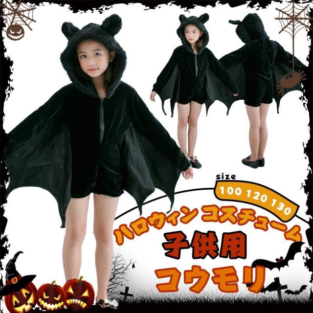 ハロウィン衣装 子供 コウモリ服 コスプレ 変装 女の子 キッズ 動物 小悪魔 妖精 魔女マント 仮装 演出服 学園祭 文化祭