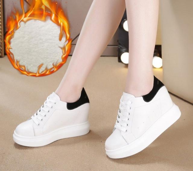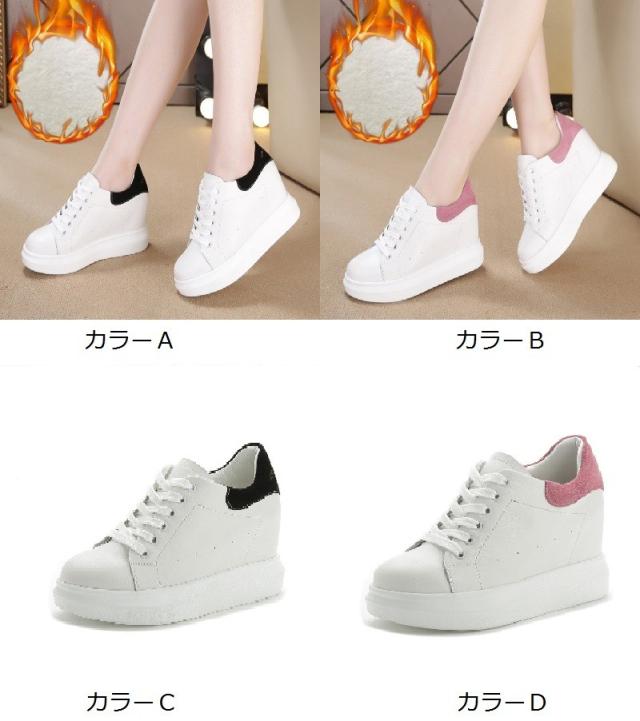 本革 牛革 スニーカー レディース スポーティー スポーティスニーカー 裏起毛 インヒール ロゴ 厚底 ロゴスニーカー カジュアル