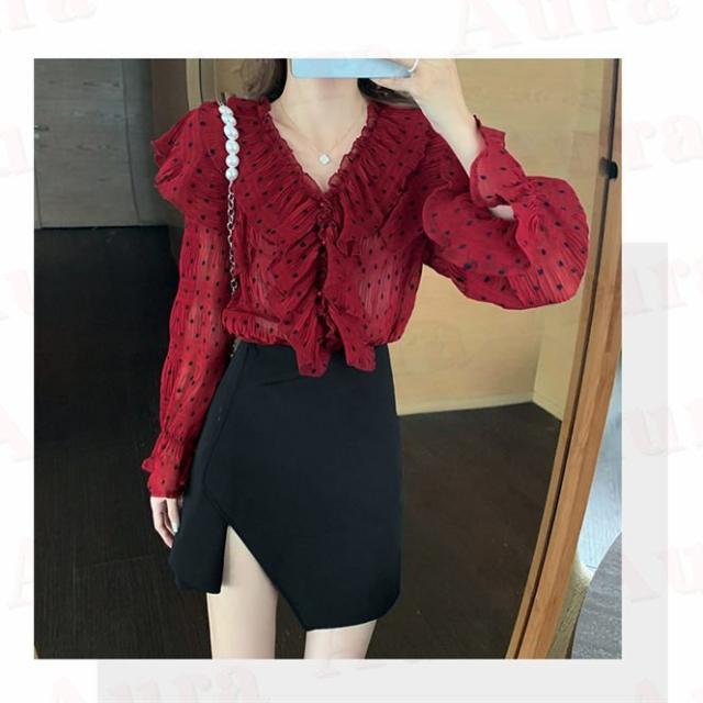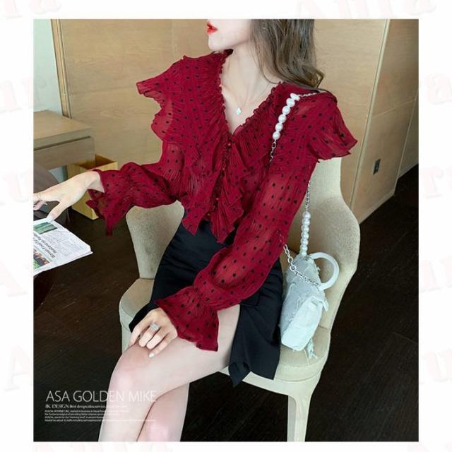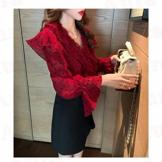 ブラウス レディース 長袖ブラウス ゆったり ブラウス 水玉 ブラウス 洗える 春秋 高見え ゆったり 秋服 新作 取り寄せ 結婚記念日