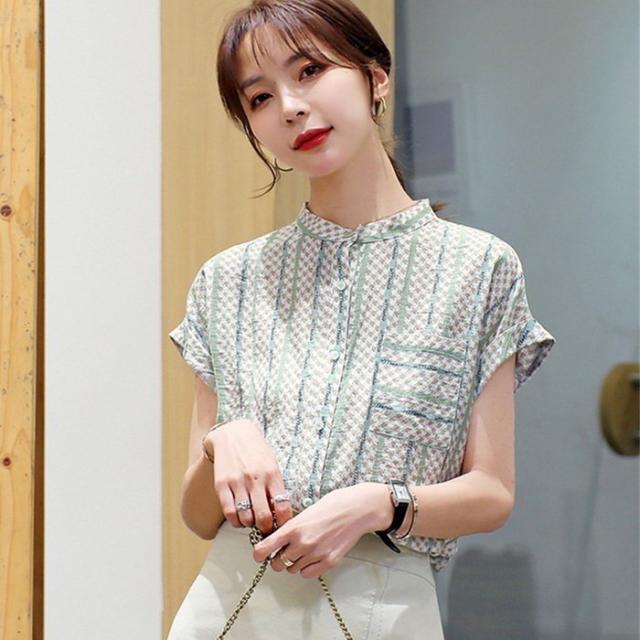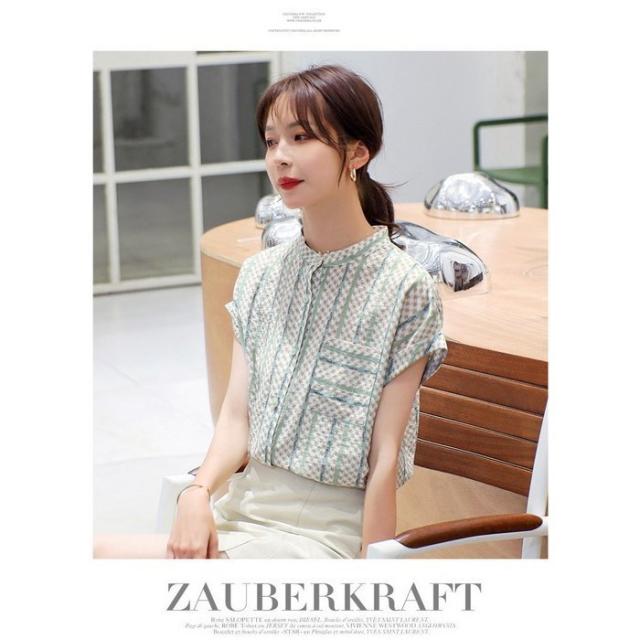 ブラウス レディース 40代 春夏新作 オシャレブラウス シフォンブラウス ストライプ柄 フレンチスリーブ 上品 半袖トップス 韓国風 通勤 ゆったりシャツ 30代