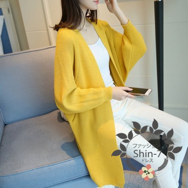 カーディガン レディース ロング丈 無地 アウター ニットソー オフィス カジュアル コート 着痩せ効果 大きいサイズ 2020秋冬新作