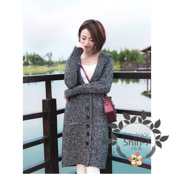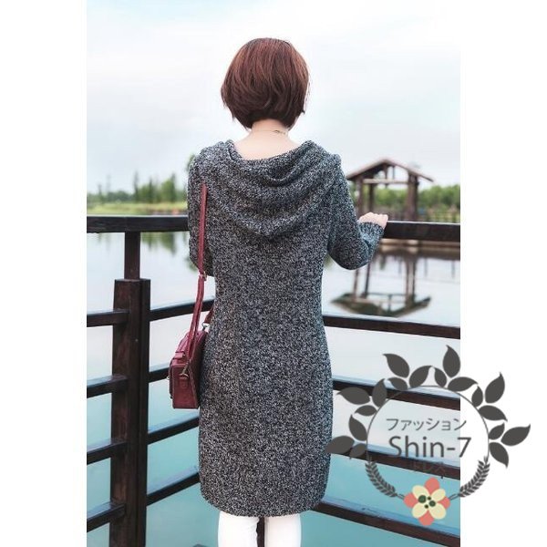 ロングカーディガン コーディガン レディース 無地 フード付き ニットカーディガン ロングコート ニット 長袖 アウター 新作