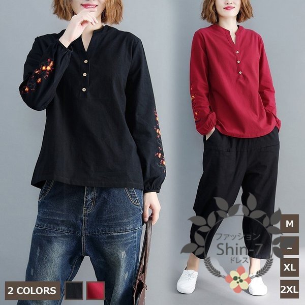 レディースシャツ 長袖ブラウス 着痩せ トップス 春夏 無地 ブラウス 通学通勤 女の子 エレガント リゾートブラウス ゆったり おしゃれ 刺繍シャツ