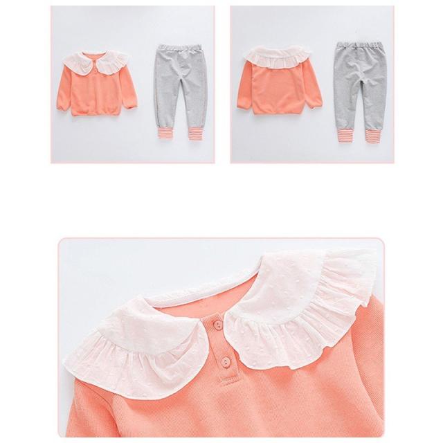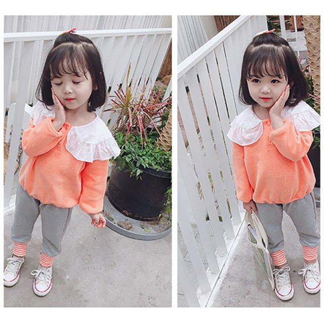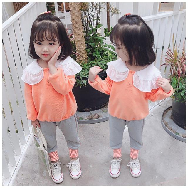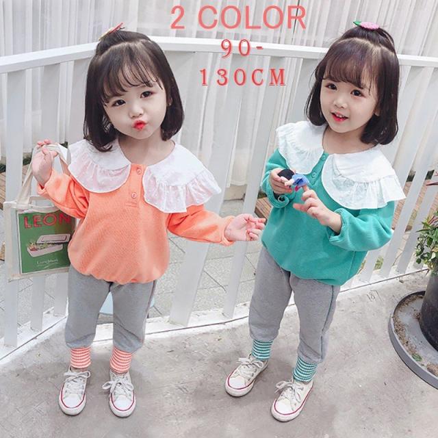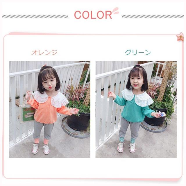 子供服 キッズウェア セットアップ 上下セット ツーピース トレーナー スウェットズボン カジュアル 襟 襟付き フリフリ かわいい ボーダー グリー