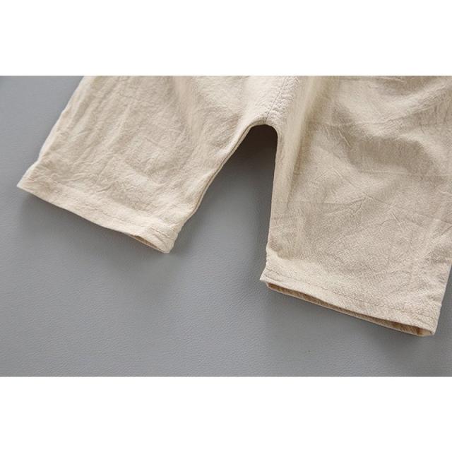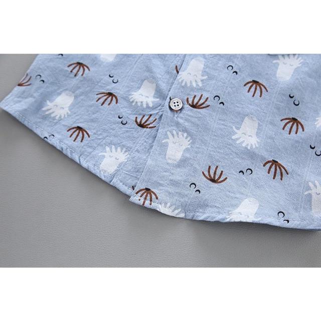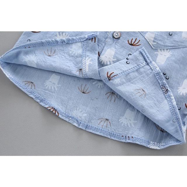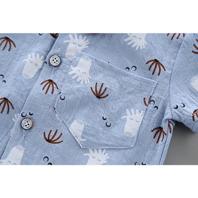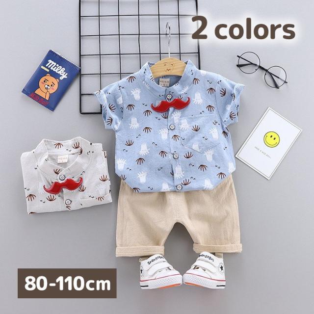 セットアップ シャツ チノパンツ 半袖 半ズボン 2点セット キッズ ベビー 男の子 ローネック プリント柄 タコ ヒゲ ポケット付き ウエストゴム