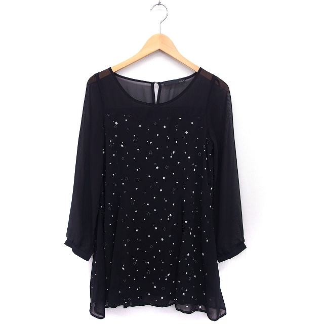 【中古】ヘザー Heather 星柄 シフォン ワンピース ミニ 長袖 シースルー 透け感 F ブラック 黒 /FT36 レディース