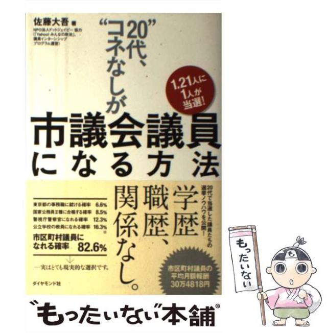 商品名:【中古】 ”20代、コネなし”が市議会議員になる方法 1.21人に1人が当選! / 佐藤大吾 / ダイヤモンド社 [単行本(ソフトカバー)]【メール便送料無料】
