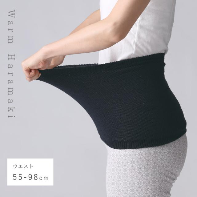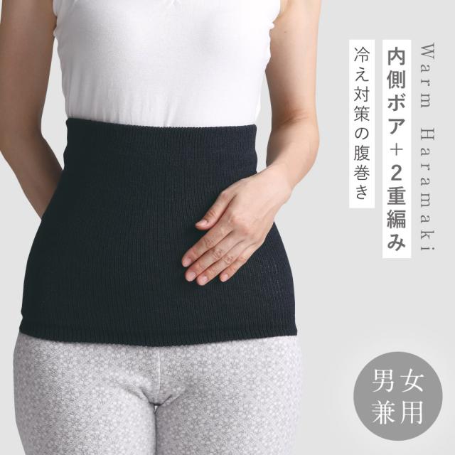腹巻き 裏起毛 ボア 冬用 秋冬用 あったか ふわふわ 男女兼用 ぽかぽか のびのび ゆったり 温かい 冷え対策 お腹 腰回り 二重編み ブラック 黒色 2重編み腹まき
