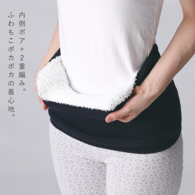 内側ボア+2重編み、冷え対策のあったか腹巻き。内側ボアと2重編みでふわふわもこもこの着心地。寒い季節に必需品です。