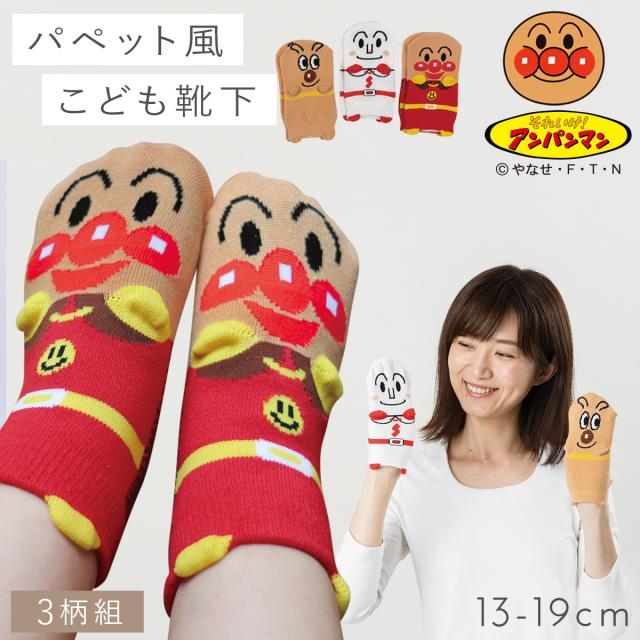靴下 子供 キッズ 3柄組 13-19cm アンパンマン 男の子 名前が書ける パペット アンパンマン ほっこりパペットソックス
