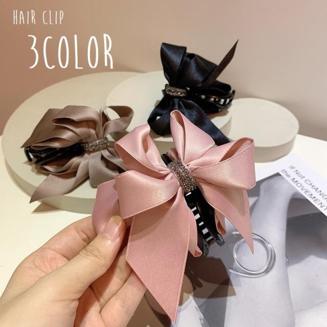 ヘアクリップ バンスクリップ レディース 女性 ヘアアクセサリー リボン 単色 髪留め 髪飾り まとめ髪 ヘアアレンジ 簡単 か