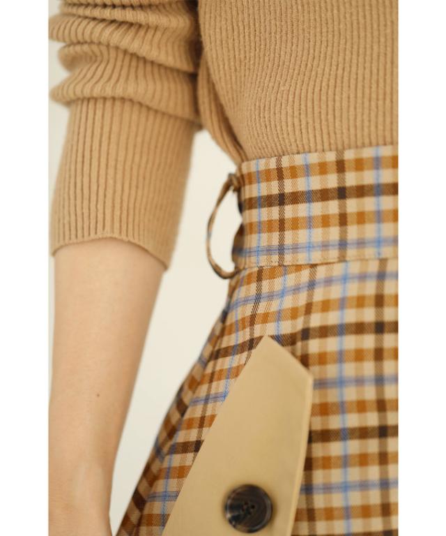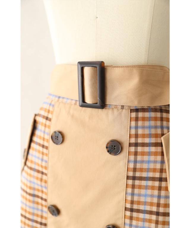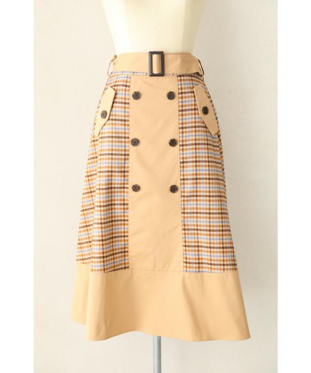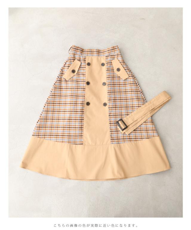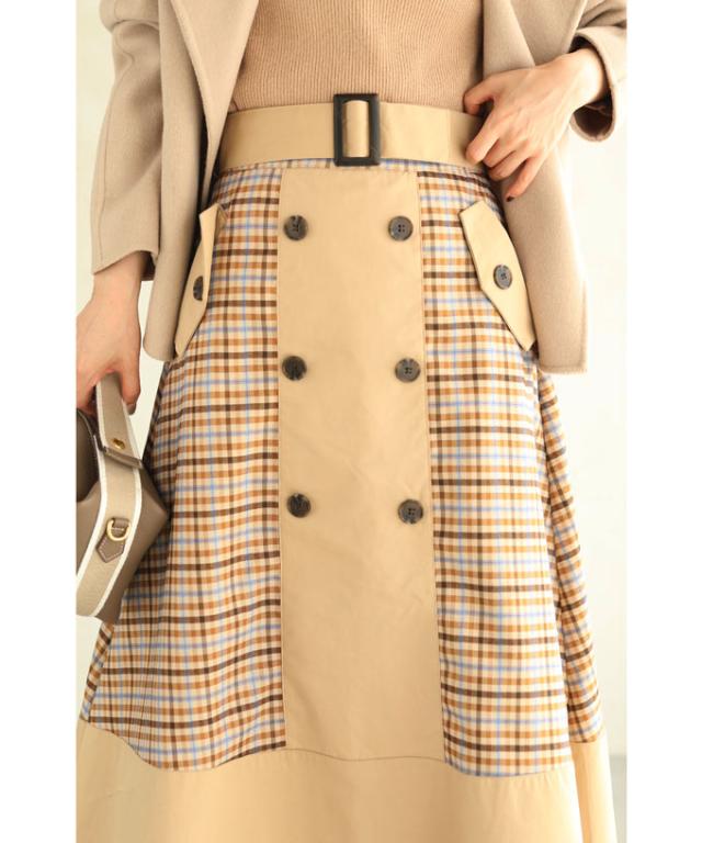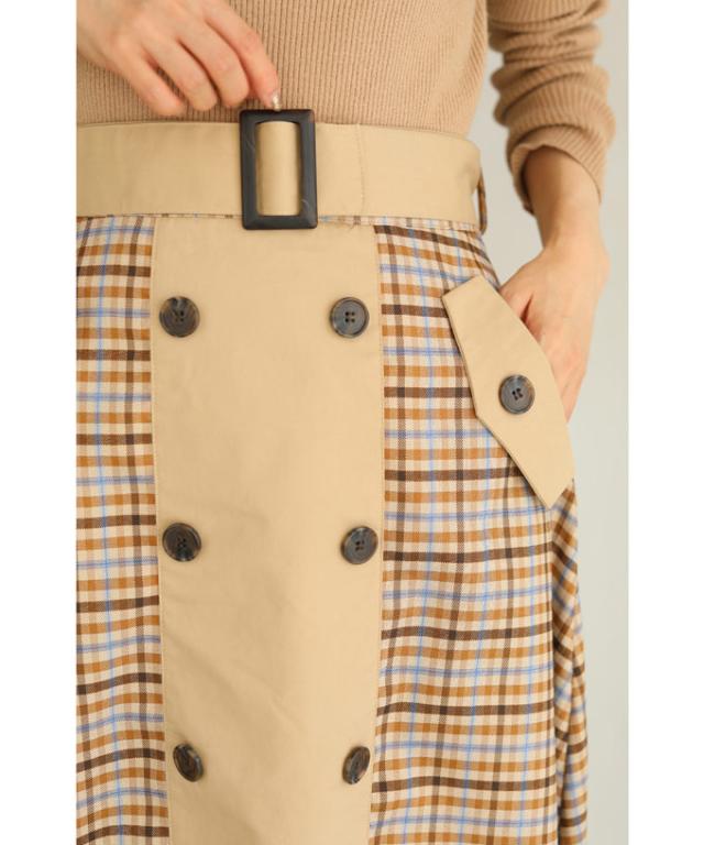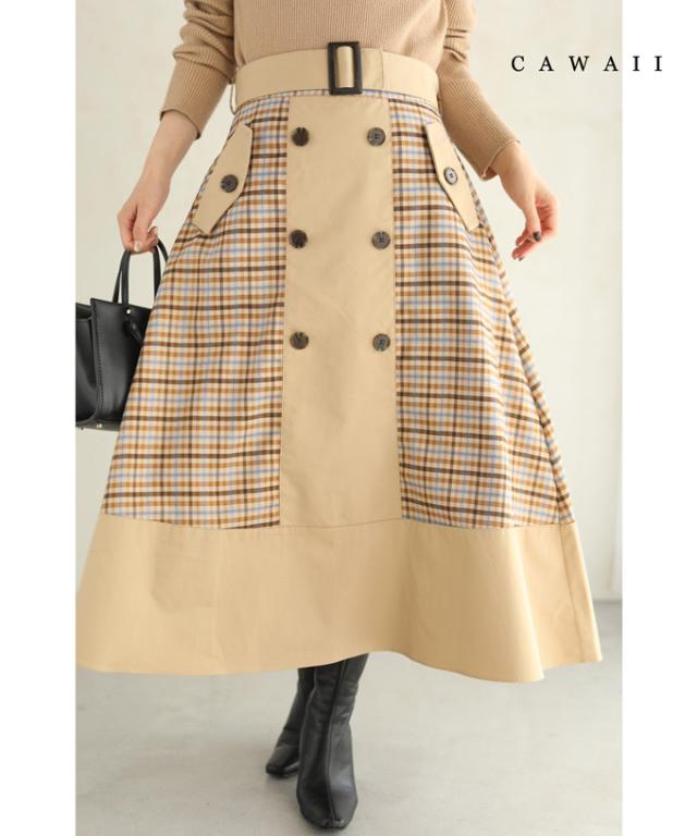 【閉店SALE】 「CAWAII」 トレンチ スカート 膝丈 wk00426 S~L (ベルト付き)チェックが可愛いトレンチミディアムスカート cawaii スカート 秋冬 チェック柄 スタンダード 通勤 オフィス きれいめ