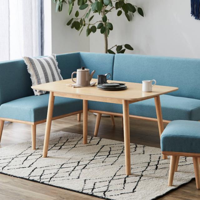 | 材質 | 天板:ビーチ突板、テーブル脚:ラバーウッド |