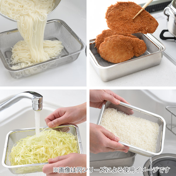 麺類の湯切りや揚げ物の油切り、野菜を洗ったり、お米を研いだり、幅広く使っていただける大きめサイズです。