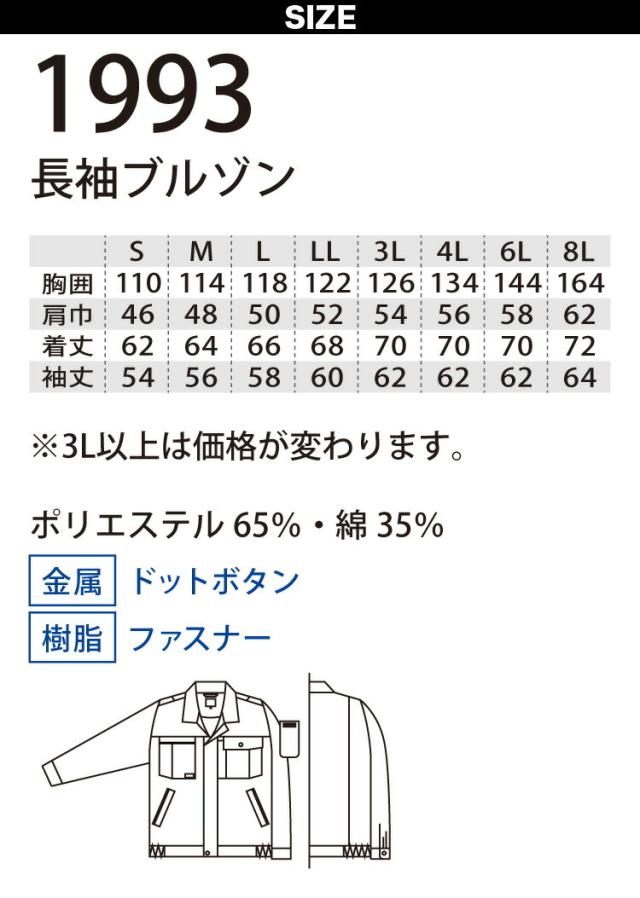 桑和 長袖ブルゾン ツータックスラックス 上下セット 1993 1999 S〜4L 70cm〜110cm 定番 作業服 作業着 T/Cソフトツイル お手ごろ オールシーズン メンズ 通年