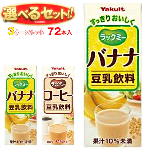 ヤクルト ラックミー 選べる3ケースセット 200ml紙パック×72(24×3)本入| 送料無料 選べる 豆乳 バナナ コーヒー