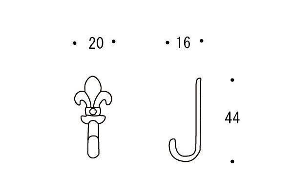 伝統的なユリのデザインのフック、小型。キーフックとしてはもちろん、キッチンのちょっとした小物掛け用にも使えます。時間とともに色調が変化する真鍮磨き仕上げ。