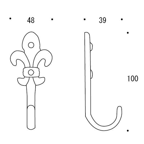 当店にあるリリー(ゆり)型フックで一番大きいサイズ。小物だけでなく、バッグも充分掛けられる大きさです。時間とともに色調が変化する真鍮磨き仕上げ。