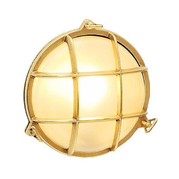 最新のLEDランプを採用した省エネ、長寿命仕様。船舶用の照明器具をして使われてきた小型のバルクヘッドライト(船舶の隔壁、艦橋部壁付け、天井付けの照明器具)を日本のエクステリア用にアレンジしたライト。クリアー塗装仕上げで、室内使用においては、ほとんど仕上げの変化はなくお使い頂けます。また屋外では、長年のご使用で表面の塗装が剥がれ真鍮独特のしぶい色調に変化していきます。本体を直接取付面に取付が可能で(直接配線)壁面からの給電が容易で取付簡単です。ボディはイタリア製、電気部品は国産品、日本工場生産品。くもりガラス(FR)仕様で、しっとりした光が特長です。
