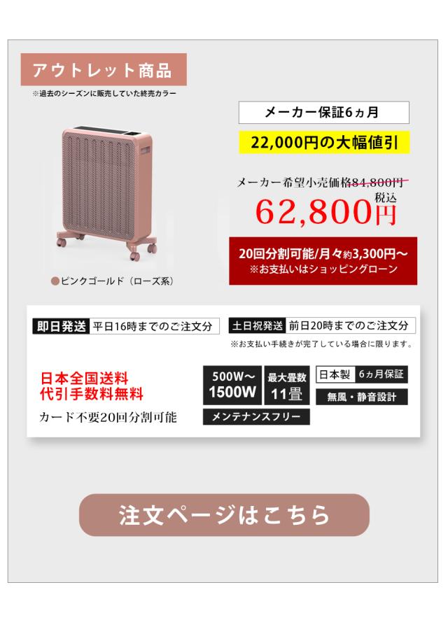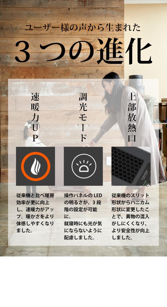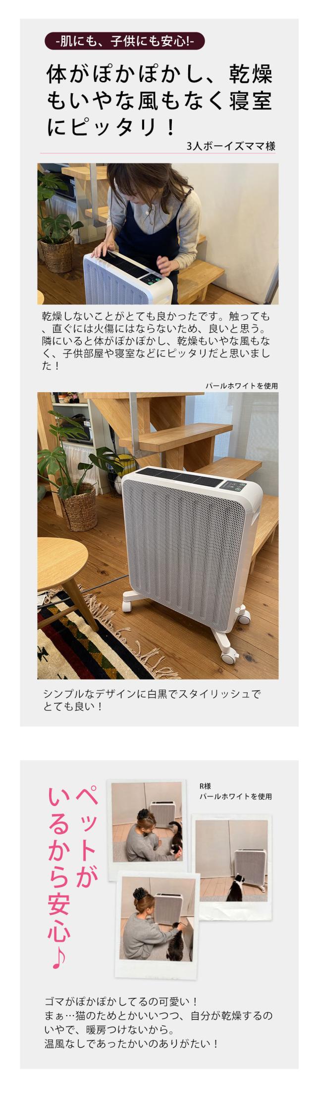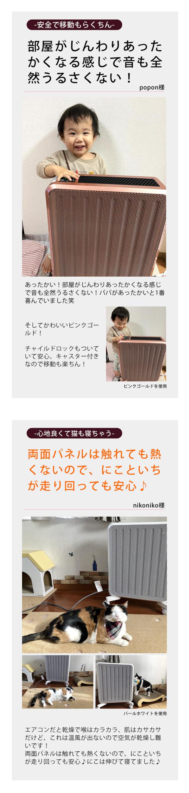 - 孫の誕生で 安全&クリーン&パワフル暖房を探した結果 こちらを購入しました。 購入当初 我が家の照明機器との相性が悪く 照明が不安定になり 問い合わせをした際、とても親身に対応を頂きました。こちらのお...