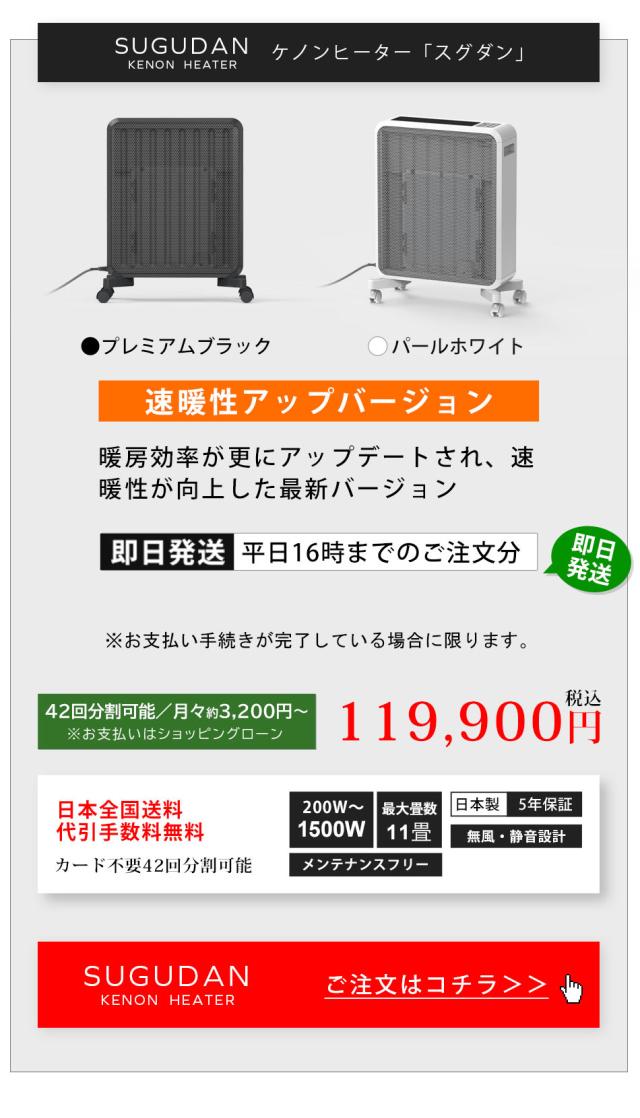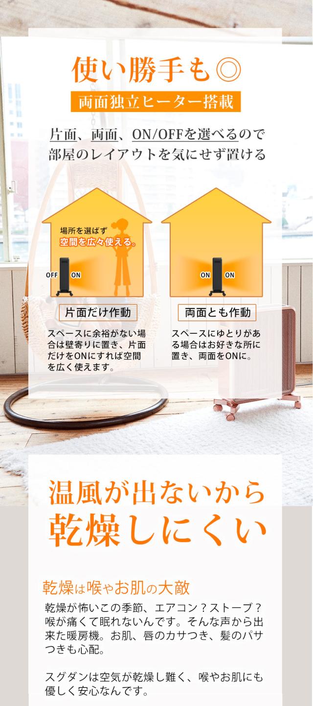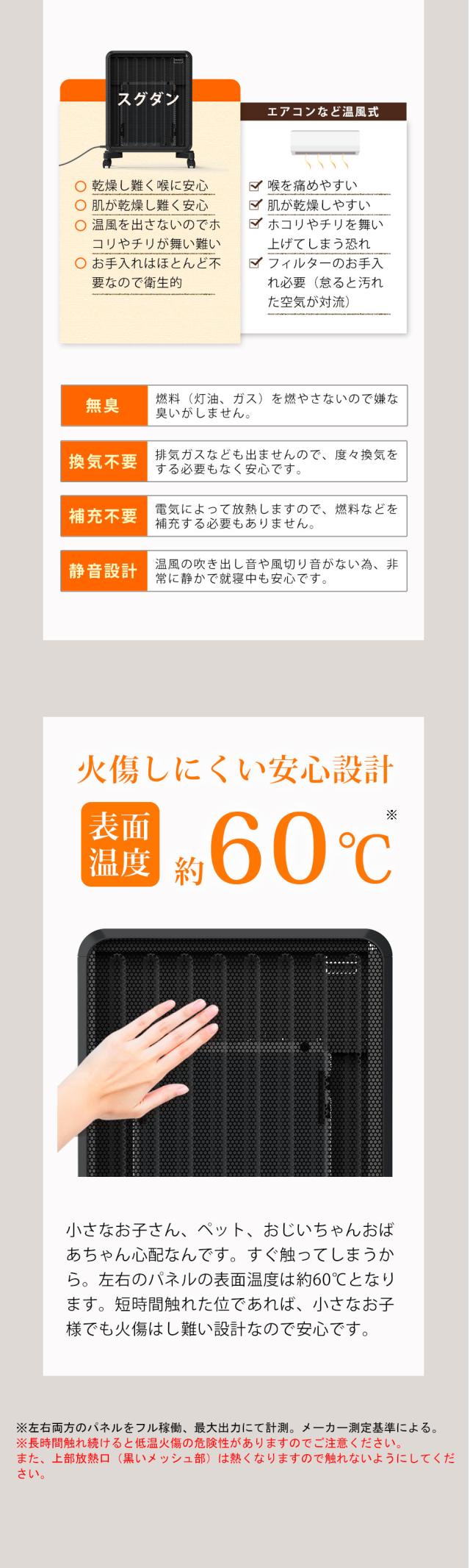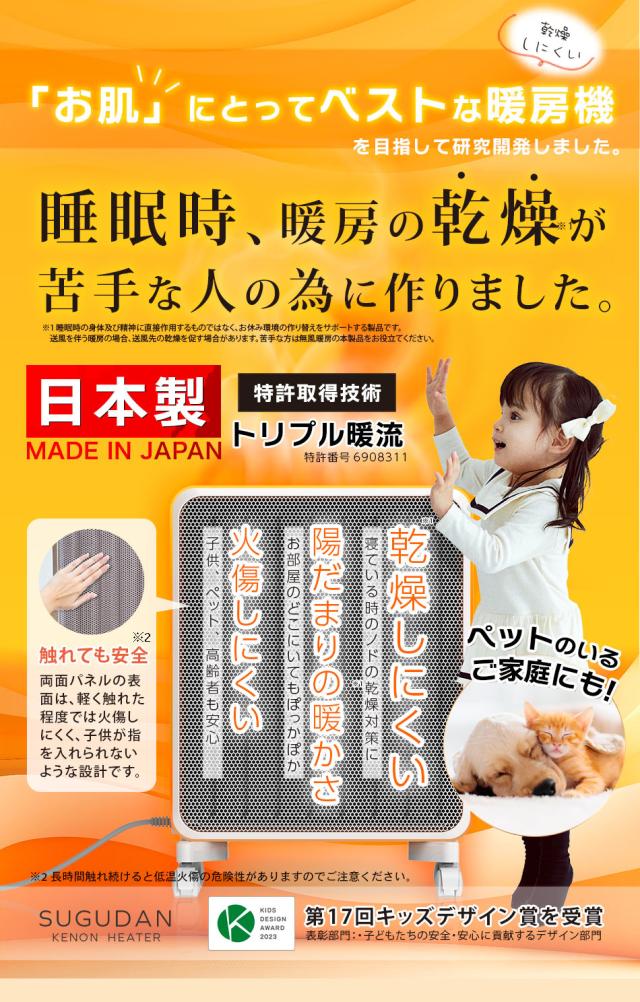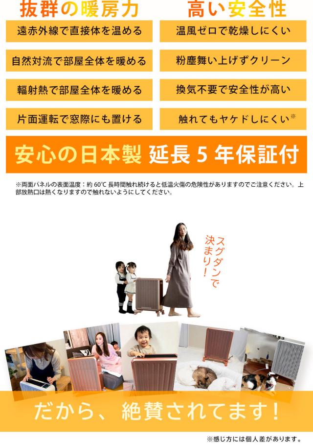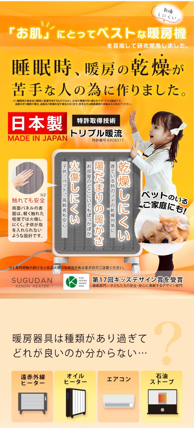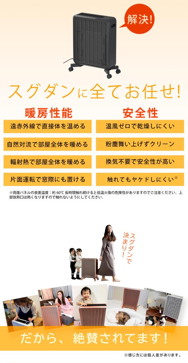 パネルヒーター 赤ちゃん,ペット,子供に安全.喉,美顔,結露も安心.あの美容機ケノンブランド開発 遠赤外線+輻射熱+自然対流のトリプル 暖房器具 日本製 3年保証 ケノンヒーター スグダン 暖房機 セラミックヒーター 遠赤外線ヒーター 省エネノンオイル ヒーター 犬