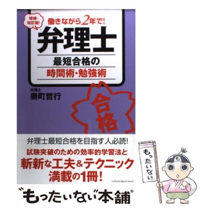 商品名:【中古】 弁理士最短合格の時間術・勉強術 働きながら2年で! 増補・改訂版! / 奥町哲行 / インデックス・コミュニケーションズ [単行本]【メール便送料無料】