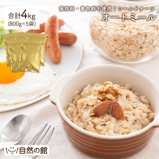 オートミール まとめ買い 合計4kg (800g×5袋) ロールドオーツ 雑穀 ダイエット 置き換え 保存食 非常食 訳あり オートグローツ