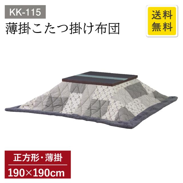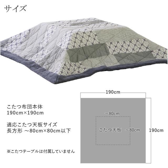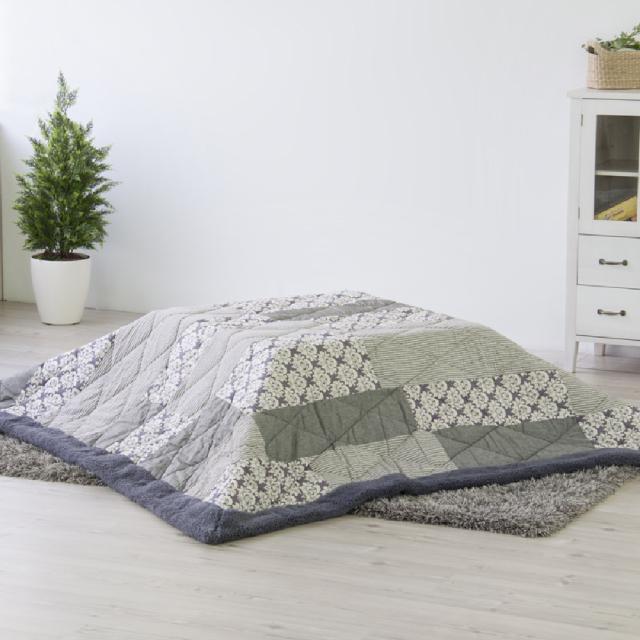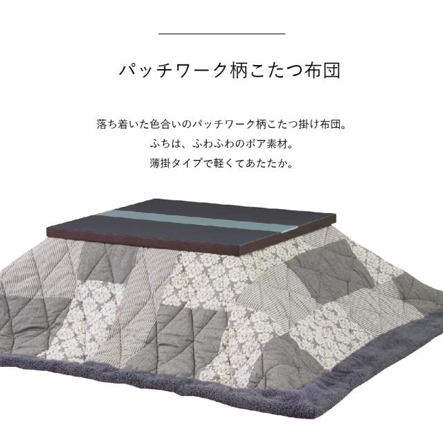 コタツ布団 薄掛コタツ布団 正方形 KK-115 190×190 パッチワーク柄 グレー コットン ポリエステル ふわふわ ボア こたつ布団 AZUMAYA 東谷 AZ MT