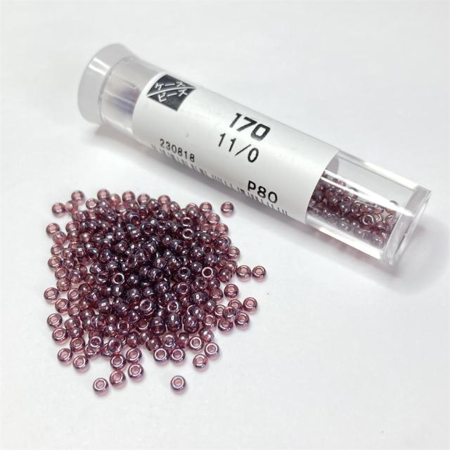 カラー番号:#170 カラー名:アメジストスキラスター 素材:ガラス 加工の種類:スキ、ツヤ有り、ラスター サイズ:2mm(11/0) 内容量:約350粒 (ケースビーズ約3g)
