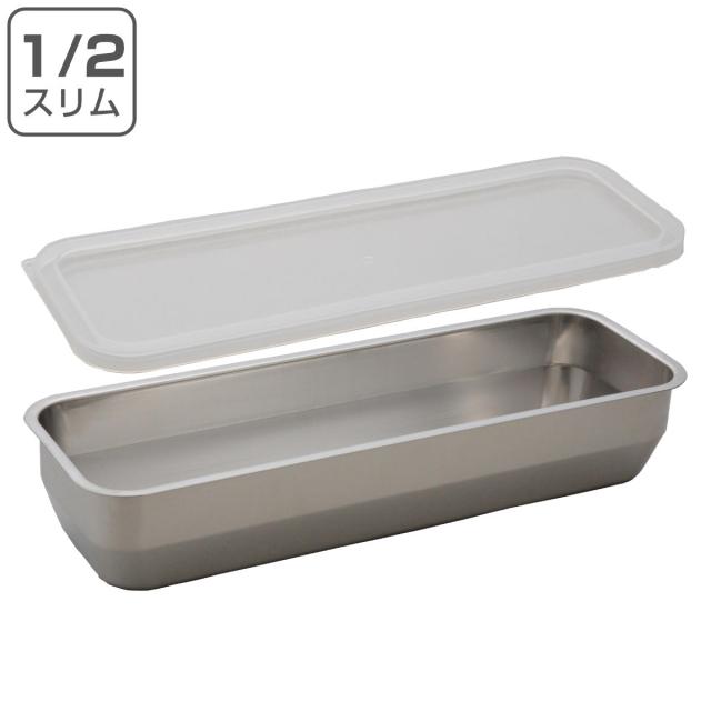お料理はかどる蓋付き角バット 1/2スリムサイズ 角型 ステンレス 日本製 ( キッチン バット 蓋 セット 料理 調理 ケース 容器 18-8ステンレス 角バット ステンレスバット 深型 フタ付き 使いやすい 丈夫 )