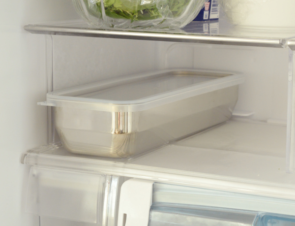 蓋付きなので、下ごしらえした食材を冷蔵庫に保存できます。またデッドスペースになっていた冷蔵庫の奥もしっかり使え、邪魔にならないスリムさです。