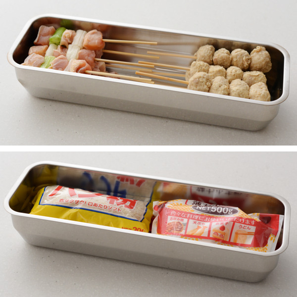 別売りのステンレストレーは、角バットの蓋としても使っていただけます。食材の一時置きもでき、組み合わせることで使い方の幅が広がります。