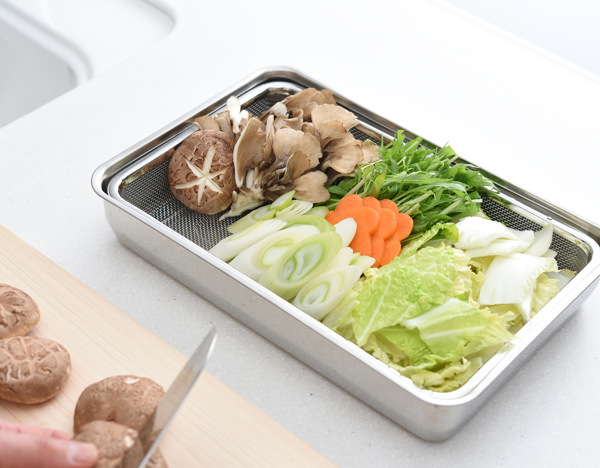 別売りのステンレストレーは、食材の一時置きや蓋、角ザルの水受けなど、組み合わせることで使い方の幅が広がります。