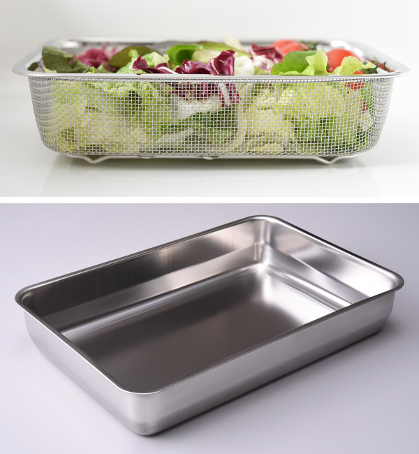 | 材質 | 角バット・ザル:18-8ステンレス 蓋:ポリエチレン(耐熱温度:80度/耐冷温度:-20度) |