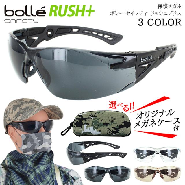 保護メガネ 曇らない 曇り止め シューティンググラス サングラス メンズ タクティカルゴーグル サバイバルゲーム サバゲー ボレーセーフティー RUSH+ ラッシュプラス BSSI クリア スモーク CSP マットブラック基調フレーム MIL-SPEC取得 ミリタリー 装備 迷彩ケース付き