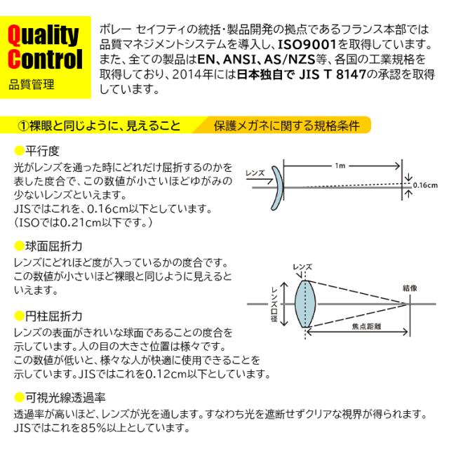 | クリア (可視光線透過率92%、ブルーライトカット10%) CSP (可視光線透過率63%、ブルーライトカット52%) スモーク (可視光線透過率13%、ブルーライトカット86%) | 調整可能ノーズピース PC/ラバー 一体成型テンプル |
