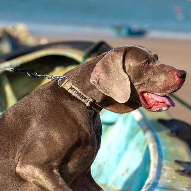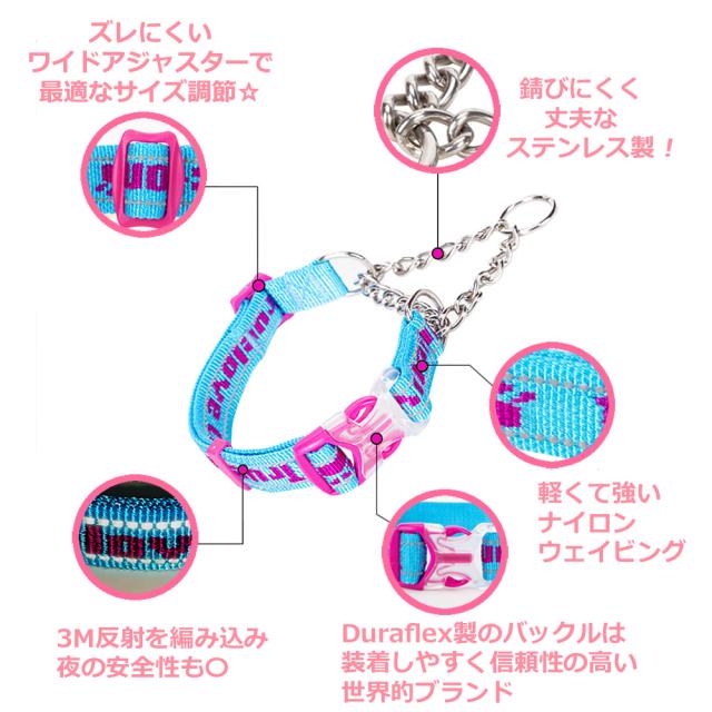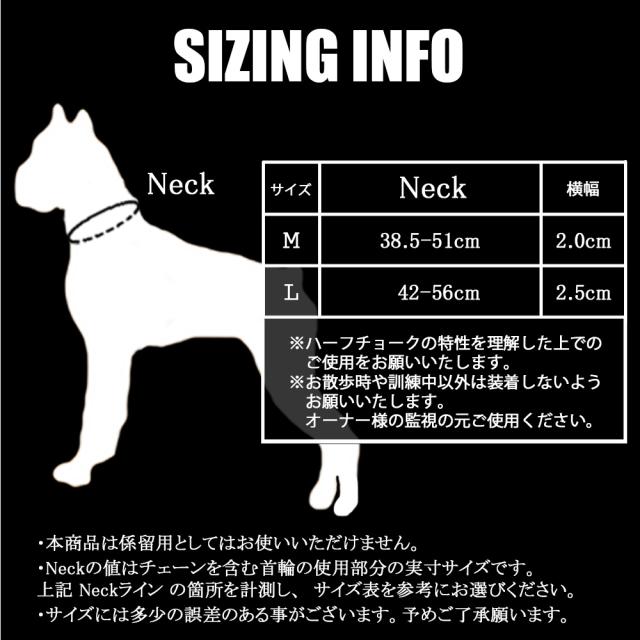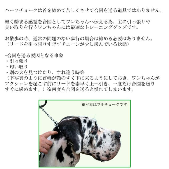 引っ張り癖、匂い取り防止等しつけ用のチェーンタイプのハーフチョーク首輪です。