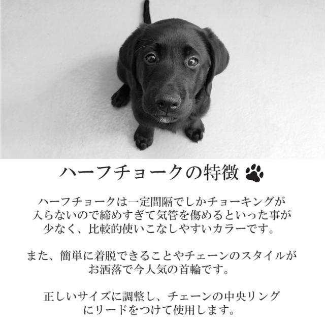 犬 首輪 ハーフチョーク ステンレス チェーン しつけ 引っ張り 匂い取り 拾い食い 歩行訓練 バックル付き 簡単装着 中型犬 大型犬 やわらかい おしゃれ