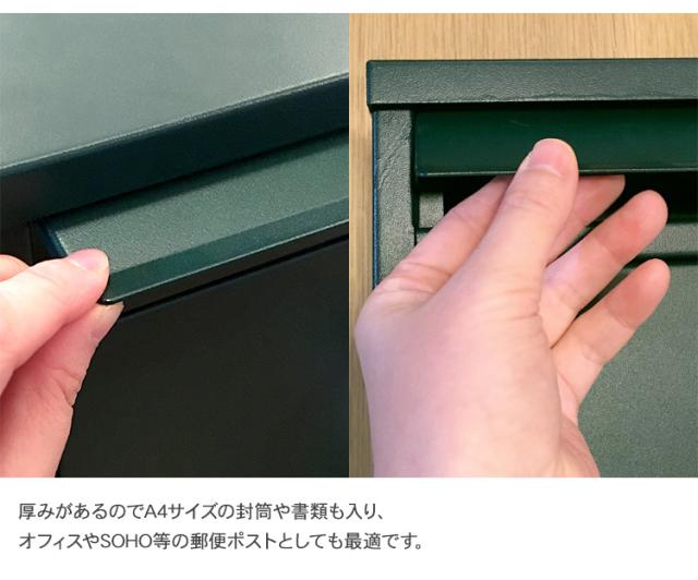 厚みがあるのでA4サイズの封筒や書類も入り、オフィスやSOHO等の郵便ポストとしても最適です。