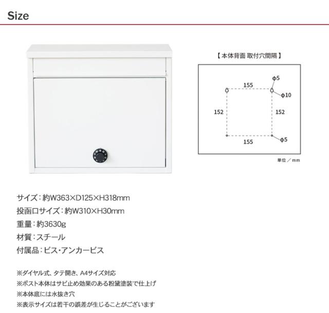 郵便ポスト ワイド型 ダイヤル式 HS2851 ポスト 壁掛け ダイヤルロック 郵便ボックス 郵便受け メールボックス A4サ