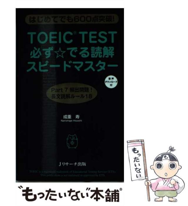 商品名:【中古】 TOEIC TEST必ず☆でる読解スピードマスター はじめてでも600点突破! / 成重寿 / Jリサーチ出版 [新書]【メール便送料無料】