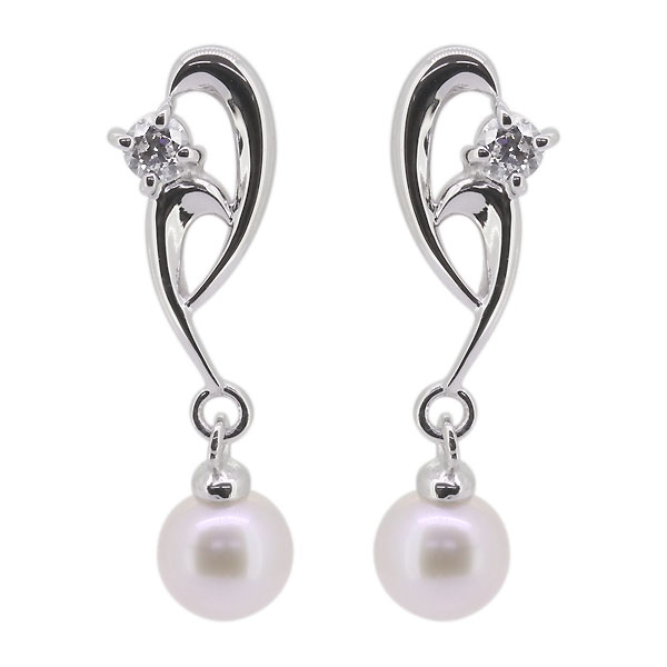 真珠 ピアス レディース プラチナ 淡水パール ピアス ぶら下がり ダイヤモンド スタッドピアス