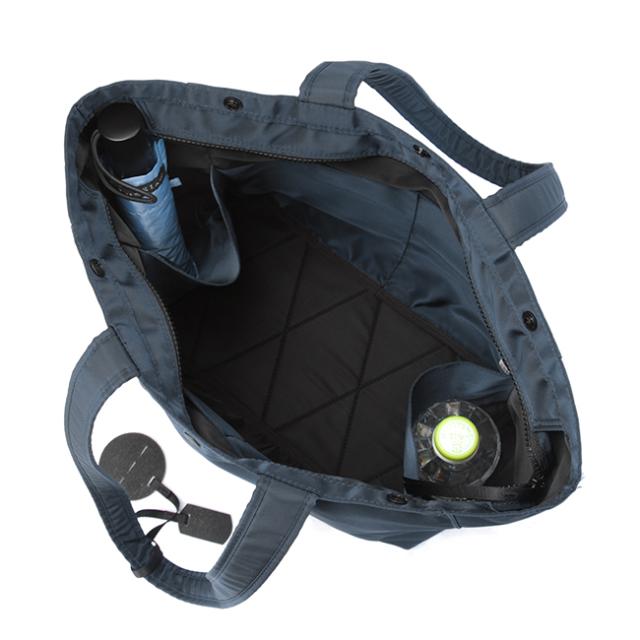 内側には、500mlのペットボトルや折りたたみ傘などが収まるポケットを搭載。