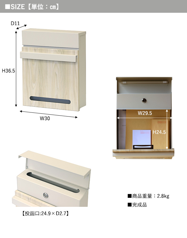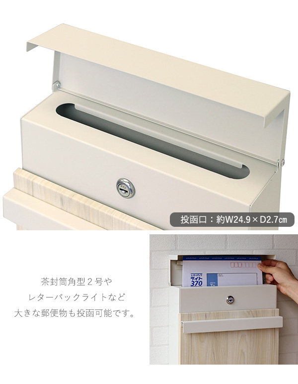 投函口:約W24.9×H27.0cm 取出口:約W29.5×H24.5cm