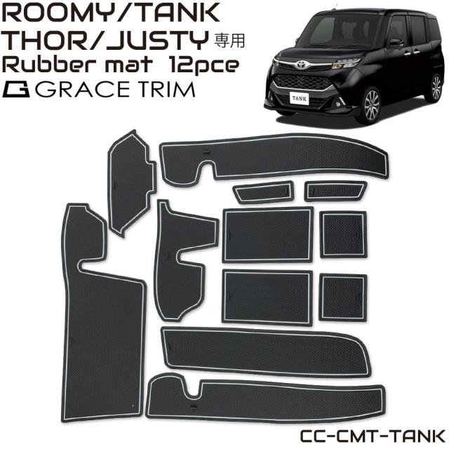 ROOMY/TANK/THOR/JUSTY 前期モデル専用 ラバーマット すべり止めシート ラバーマット ポケットマット 車種専用設計 インテリアラバーマット ゴムマット ブラック×ホワイトライン 蓄光 12ピースセット CC-CMT-TANK メール便(ネコポス)送料無料