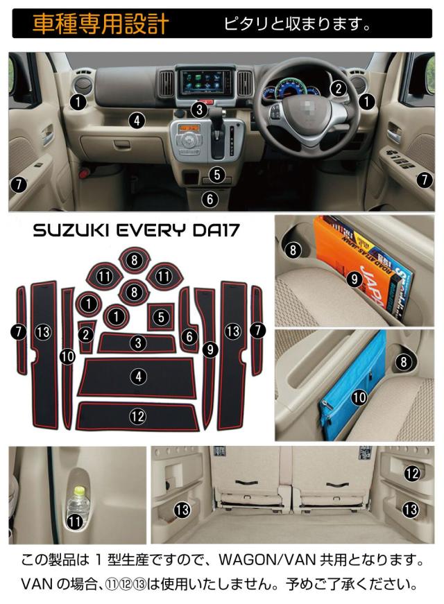 スズキ エブリィ バン カスタム エブリィワゴン da17 da17v アクセサリー ラバーマット ポケットマット 車種専用設計 インテリアラバーマット SUZUKI DA17W ラバーマット 全2 18ピースセット CC-SZEV17RM ネコポス 送料無料