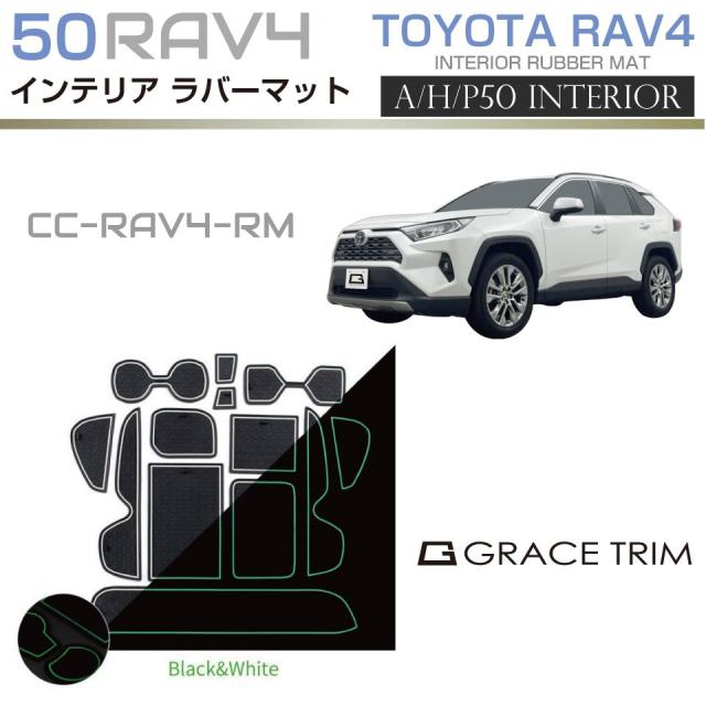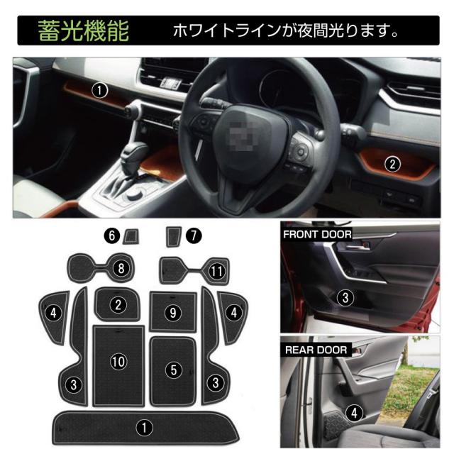 RAV4 50系 ラバーマット トヨタ すべり止めシート ポケットマット ラバードマット 車種専用設計 ラバードアポケットマット インテリアラバーマット ブラック×ホワイト 蓄光 13ピースセット CC-RAV4-RM ネコポス 送料無料
