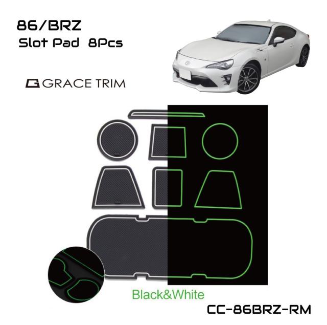 86/BRZ トヨタ ラバーマット すべり止めシート ポケットマット ラバードマット 車種専用設計 ラバードアポケットマット インテリアラバーマット ブラック×ホワイトライン 蓄光 8ピースセット CC-86BRZ-RM メール便(ネコポス)送料無料
