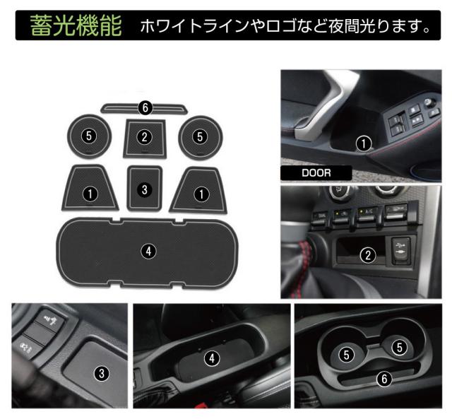 ・トヨタ 86/スバル BRZの車種専用設計ラバーポケットマットです。 ・車内のコンソールBOX内やドアのポケット等に小物や小銭を入れた際のカタカタ音、動きが気になった事はありません? ・このアイテムは置くだけの簡単設置で騒音・汚れ・傷を防ぎます! ・ラバー素材のマットなのでクッション性、滑り止め効果を持つ等パフォーマンス性に優れています。 ・丸洗いOKなので汚れても簡単に綺麗を保てます。 ・車種専用設計の全8ピースセットなので車内のポケットを隅々までカバーできます。 ・更に白ラインのみ、通常時は黒ベースに白ラインの落ち着いたデザインながら夜間は白いライン部分が光る蓄光タイプでおしゃれ! |