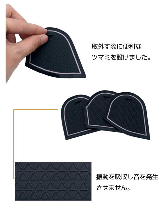 ・トヨタ ノア/ヴォクシー/エスクァイア 80系の車種専用設計ラバーポケットマットです。 ・車内のコンソールBOX内やドアのポケット等に小物や小銭を入れた際のカタカタ音、動きが気になった事はありません? ・このアイテムは置くだけの簡単設置で騒音・汚れ・傷を防ぎます! ・ラバー素材のマットなのでクッション性、滑り止め効果を持つ等パフォーマンス性に優れています。 ・丸洗いOKなので汚れても簡単に綺麗を保てます。 ・車種専用設計の全19ピースセットなので車内のポケットを隅々までカバーできます。 ・更に白ラインのみ、通常時は黒ベースに白ラインの落ち着いたデザインながら夜間は白いライン部分が光る蓄光タイプでおしゃれ! |